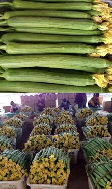 2、把絲瓜拿在手里掂量掂量,感覺整條瓜要有彈性;手指稍微用力捏一捏,如果感覺到硬硬的,就千萬不要買,硬硬的絲瓜就非常有可能是苦的。